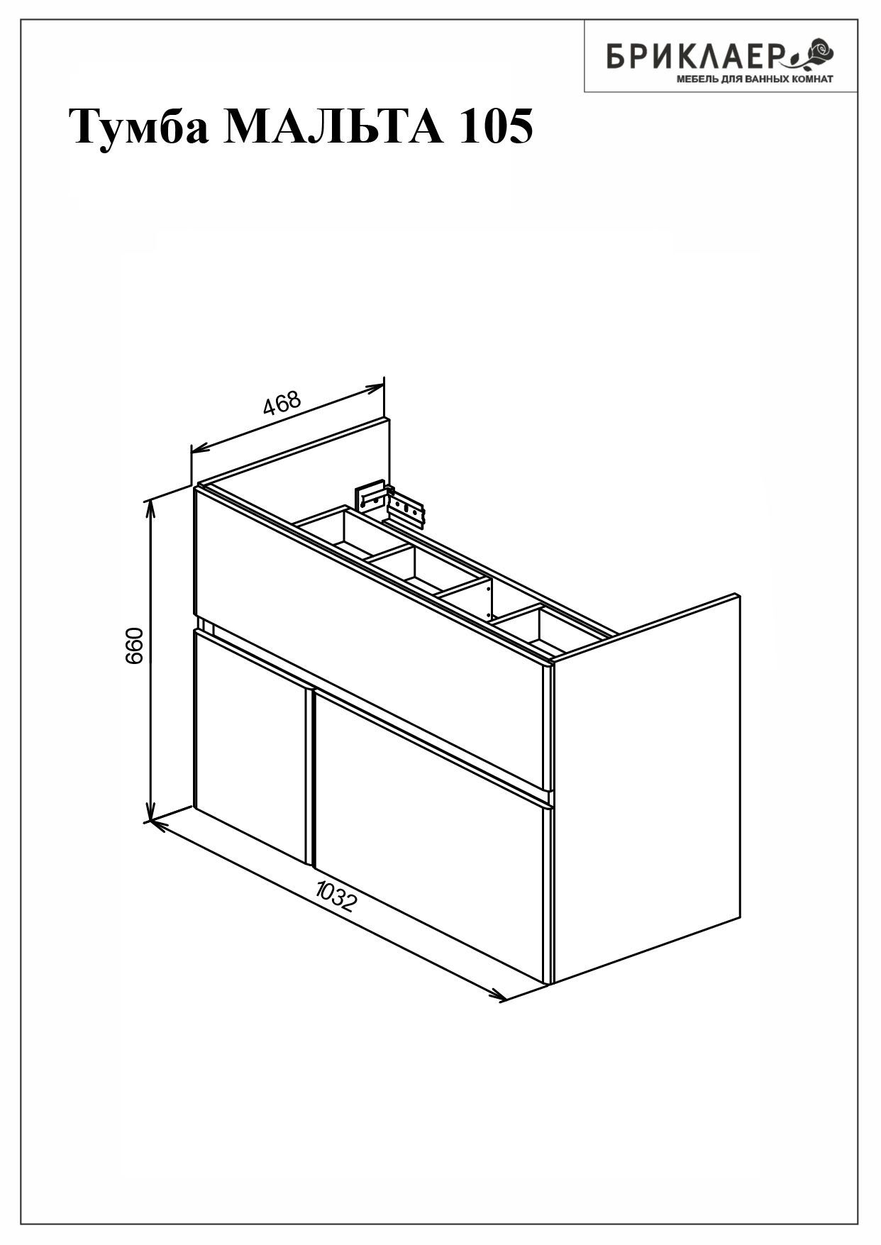 • Тумба с раковиной Бриклаер Мальта 105 (ш/в/г): 1065x660x475 мм