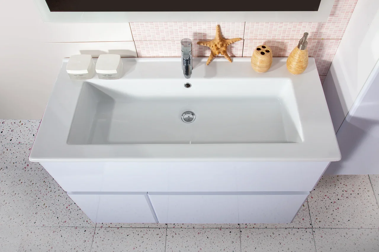 Тумба с раковиной Бриклаер Мальта 105 белый глянец
