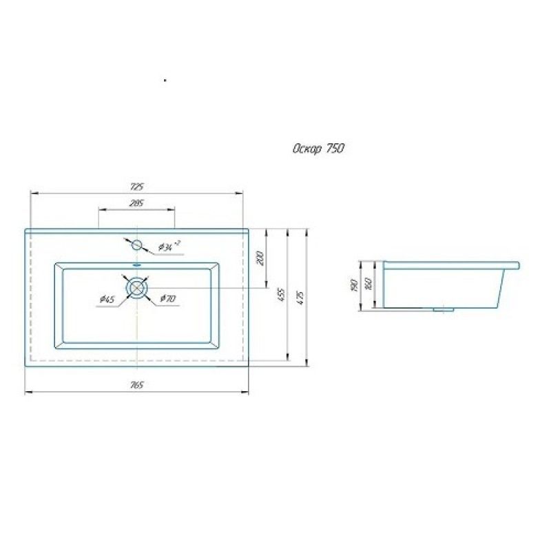 • Раковина Kirovit Оскар 75 (ш/в/г): 765x145х475 мм