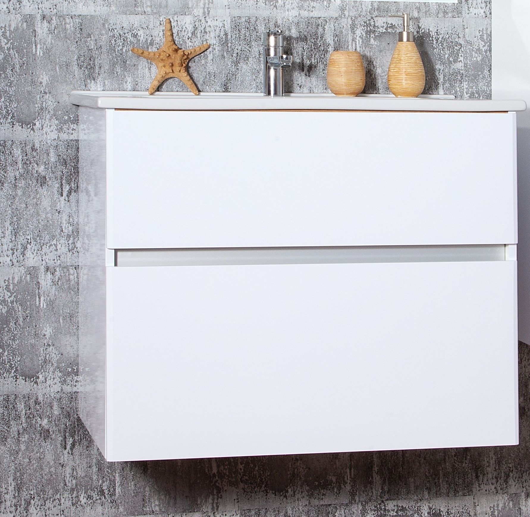 Тумба с раковиной Бриклаер Мальта 75 белый глянец