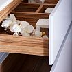 Фасад модели выполнен из МДФ: материалы не восприимчивы к влаге, на длительный срок сохраняют форму и цвет изделия в первозданном виде, экологически безопасен.