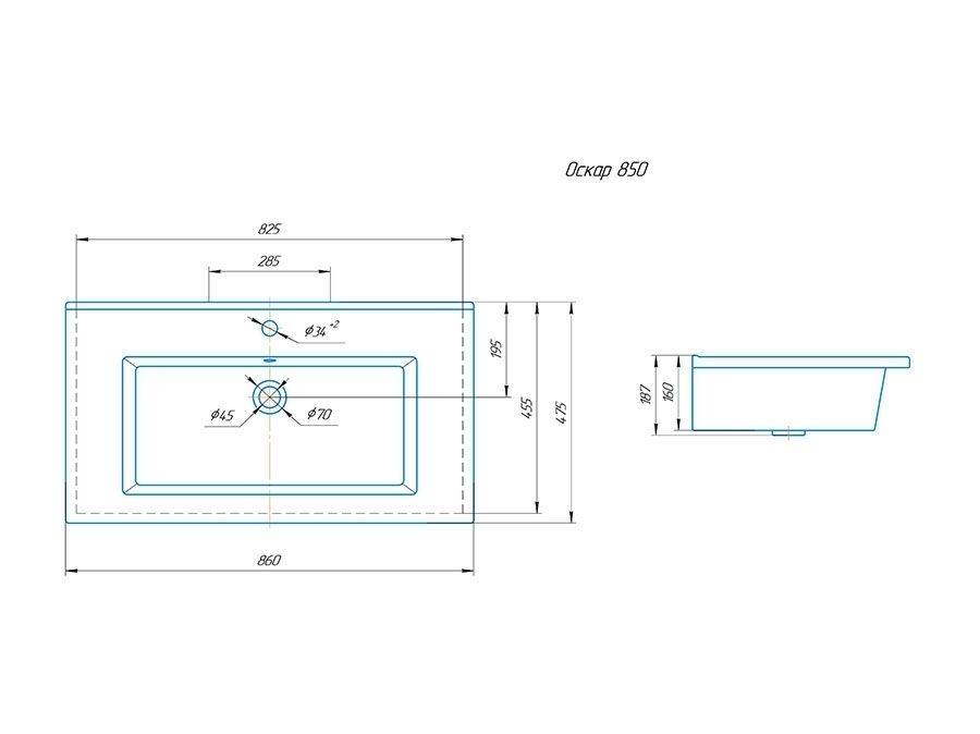 • Раковина Kirovit Оскар 85 (ш/в/г): 860x145х475 мм