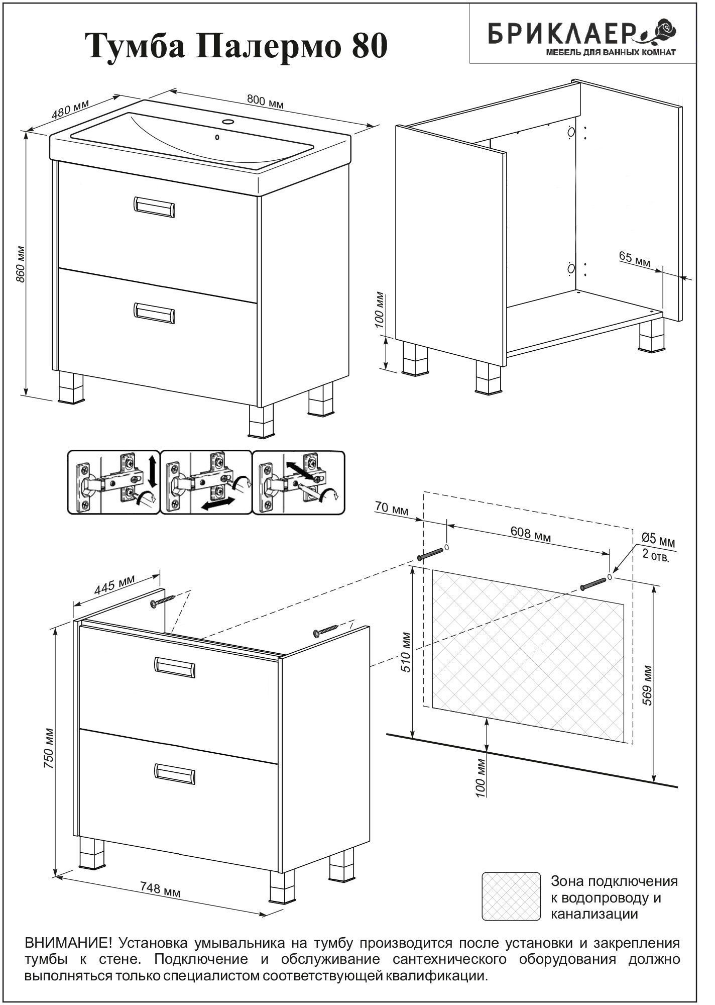 Тумба с раковиной Бриклаер Палермо 80 напольная