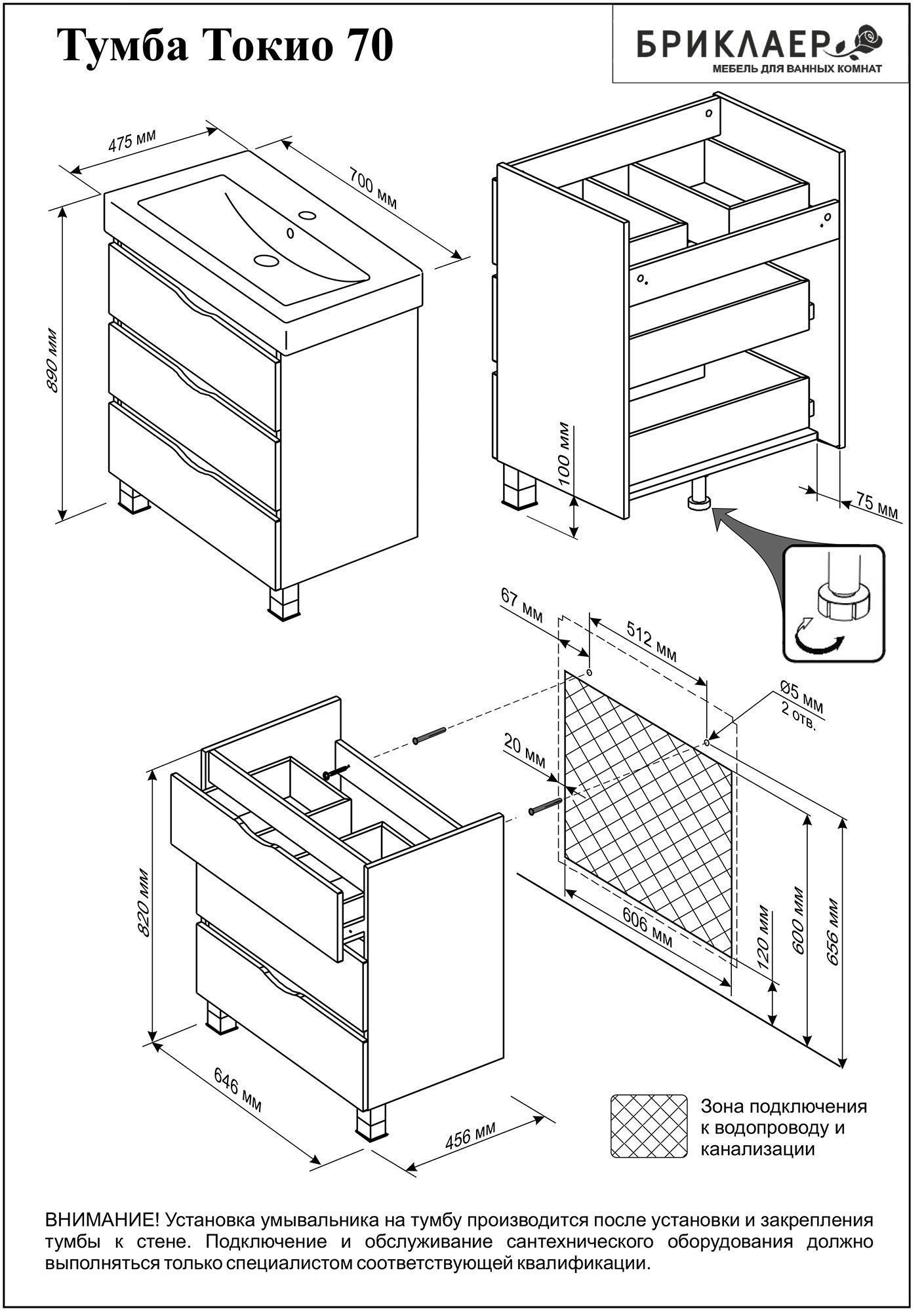 Тумба с раковиной Бриклаер Токио 70 светлая лиственница