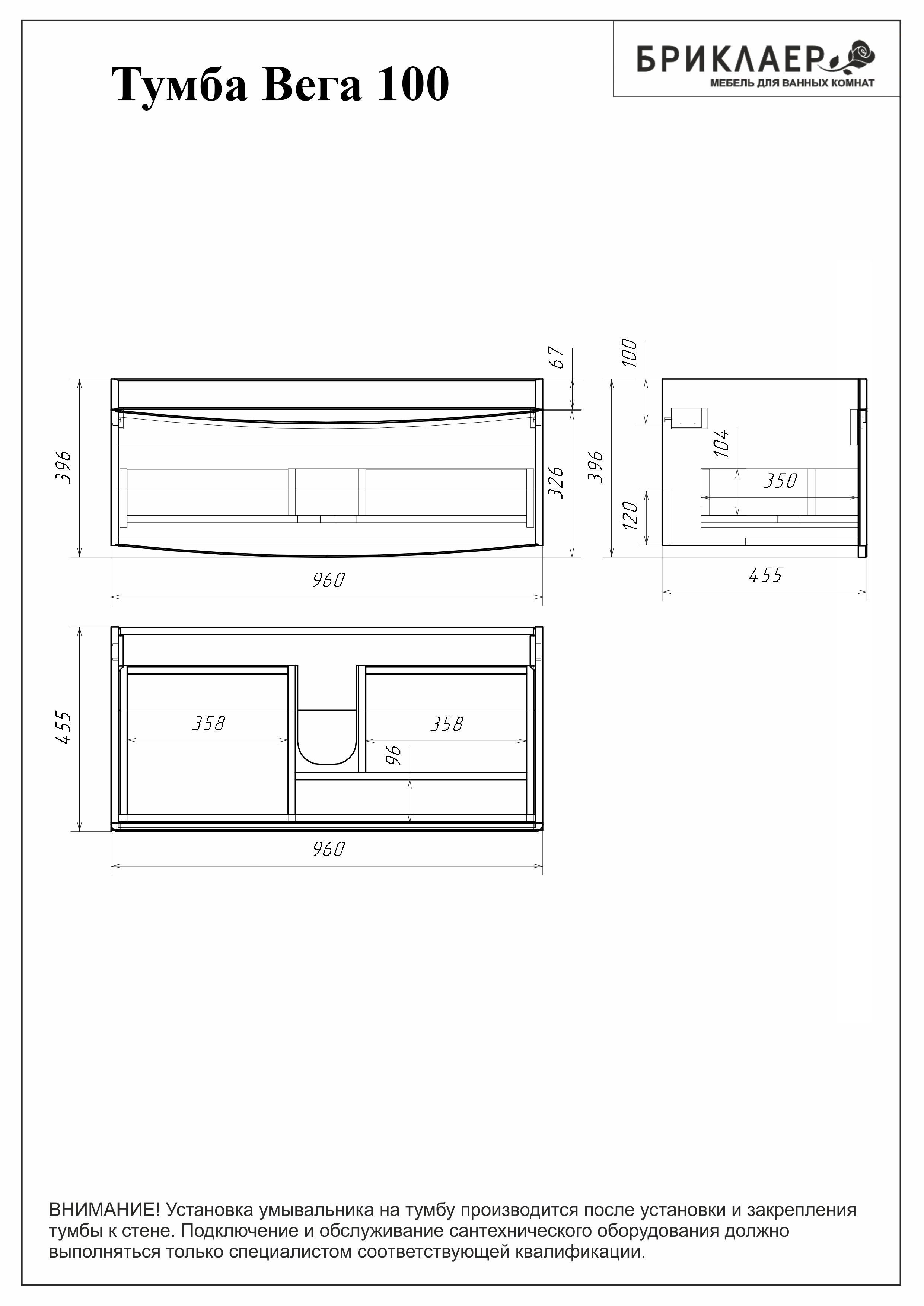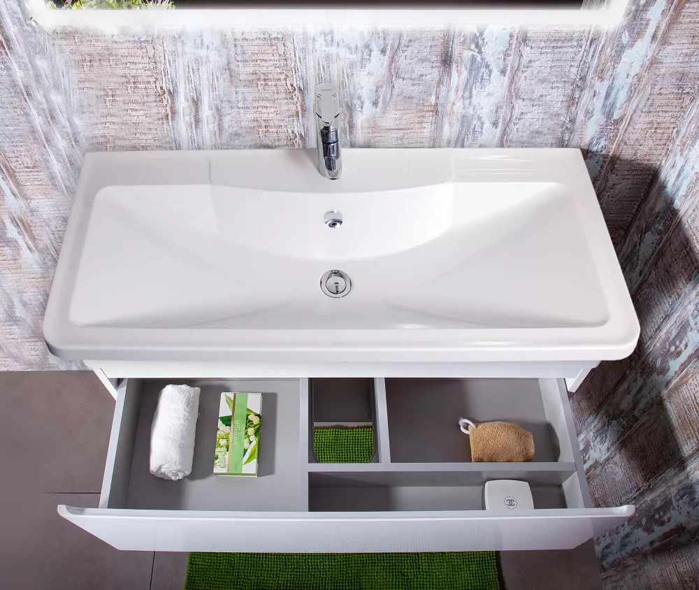 Тумба с раковиной Бриклаер Вега 100 белый глянец