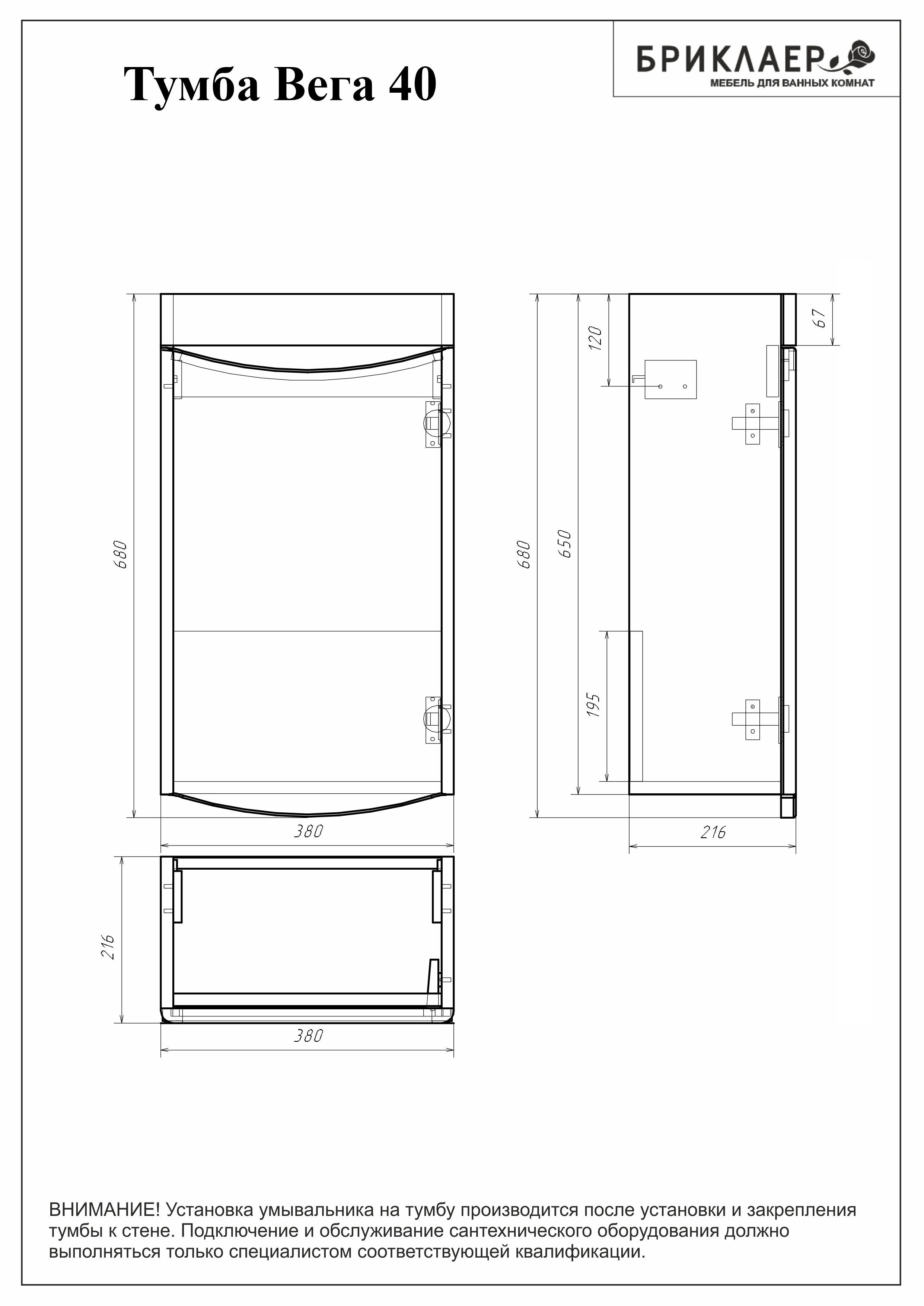 Тумба с раковиной Бриклаер Вега 40 белый глянец