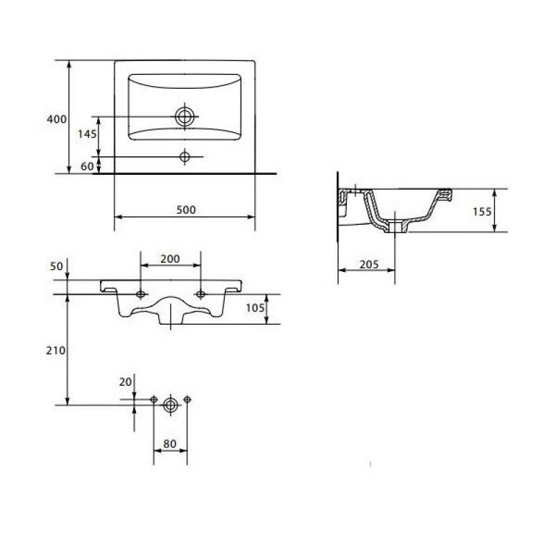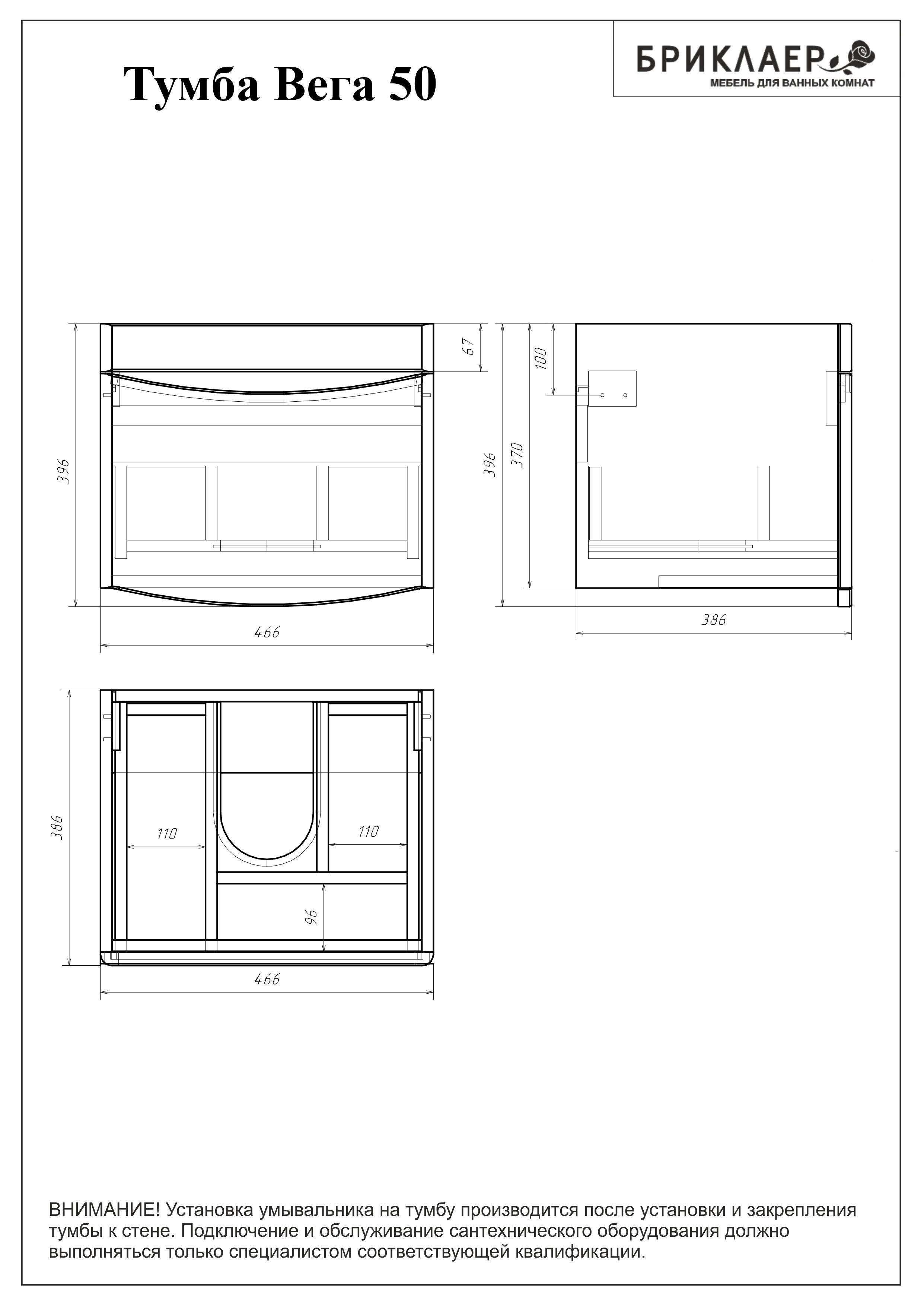 Тумба с раковиной Бриклаер Вега 50 белый глянец