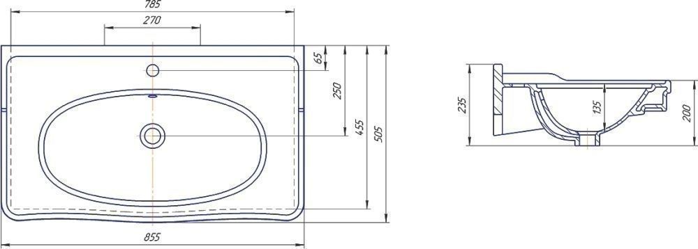 Тумба с раковиной Opadiris Валери 85 сапфир