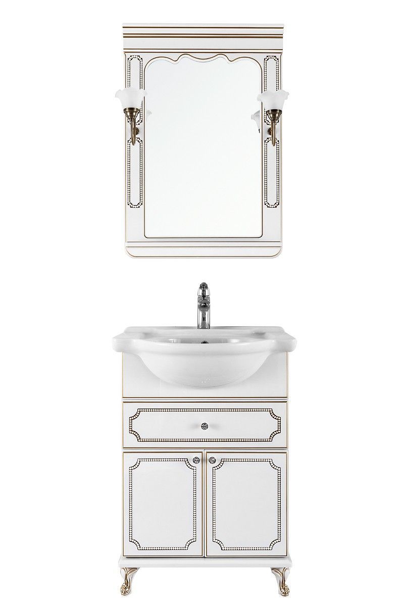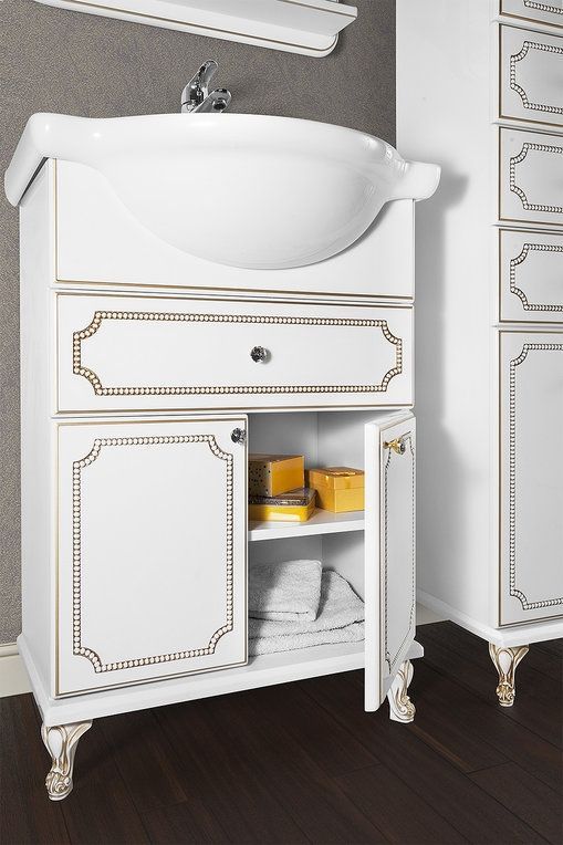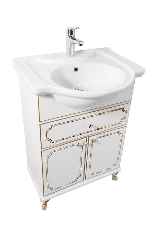 Тумба с раковиной Vod-ok Мариэль 65 белая с золотом
