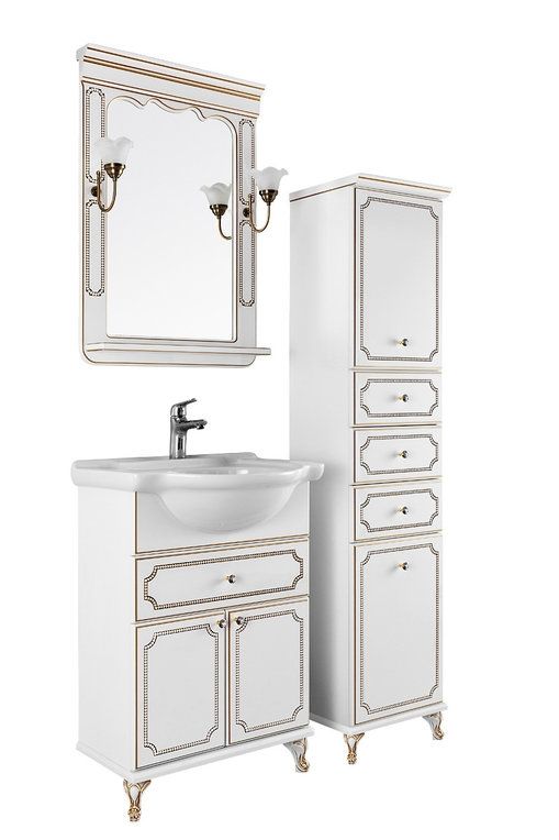 Тумба с раковиной Vod-ok Мариэль 75 белая с золотом
