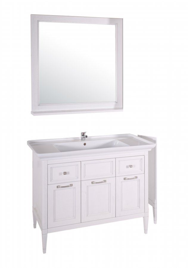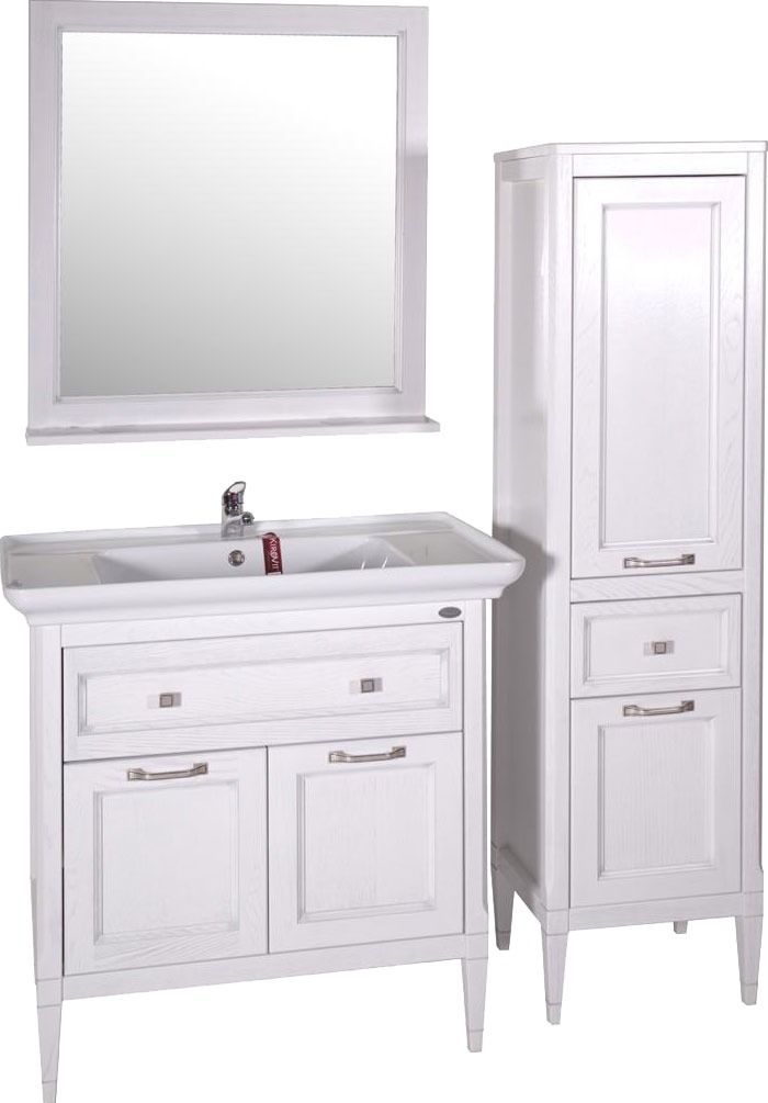 Зеркало ASB-Woodline Гранда 80 белое, патина серебро