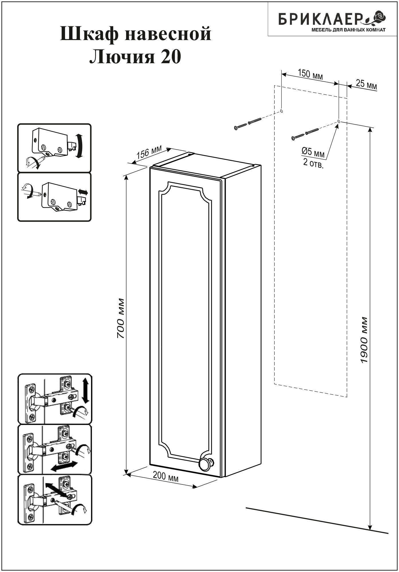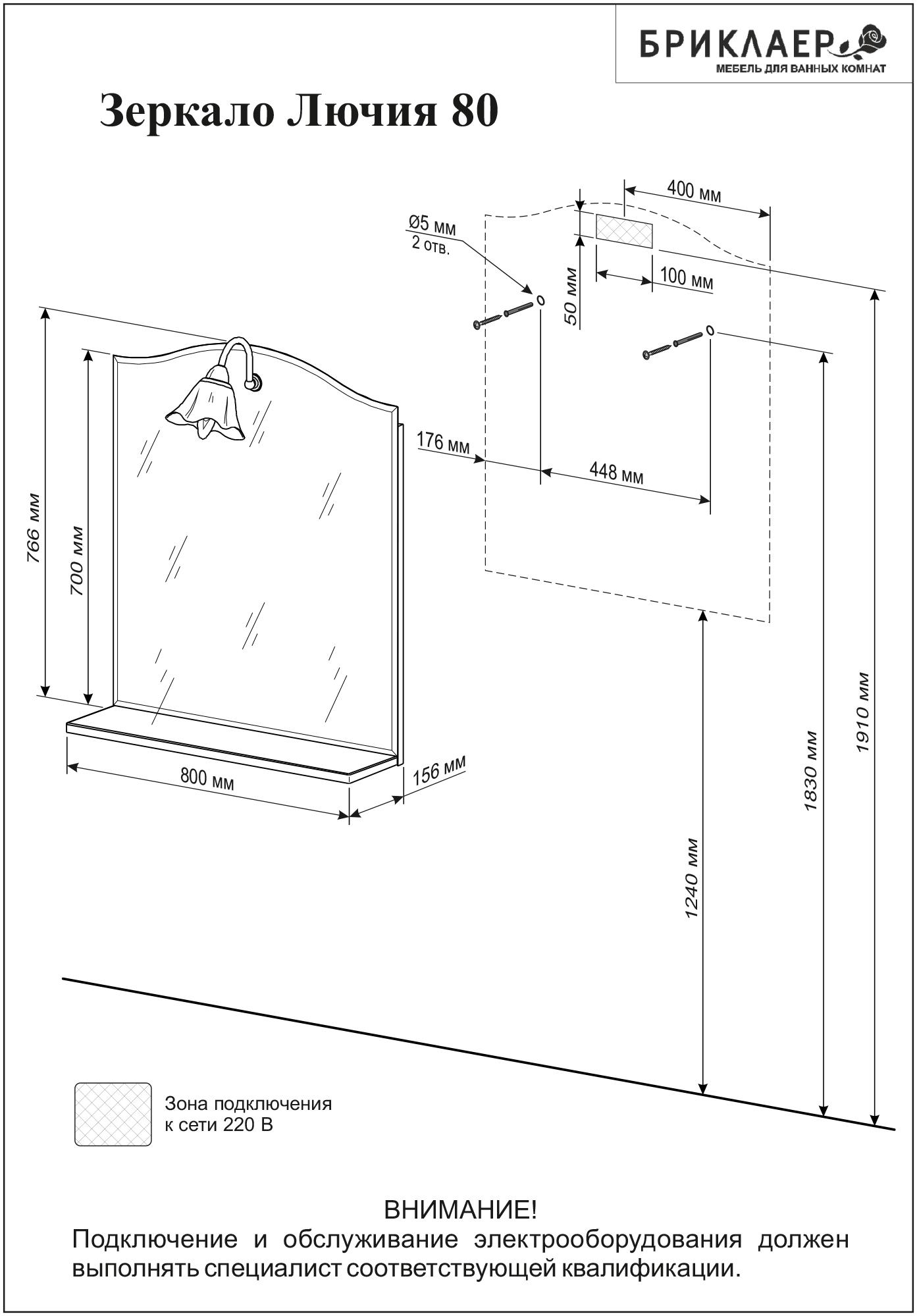 Зеркало Бриклаер Лючия 120 белое с двумя шкафчиками