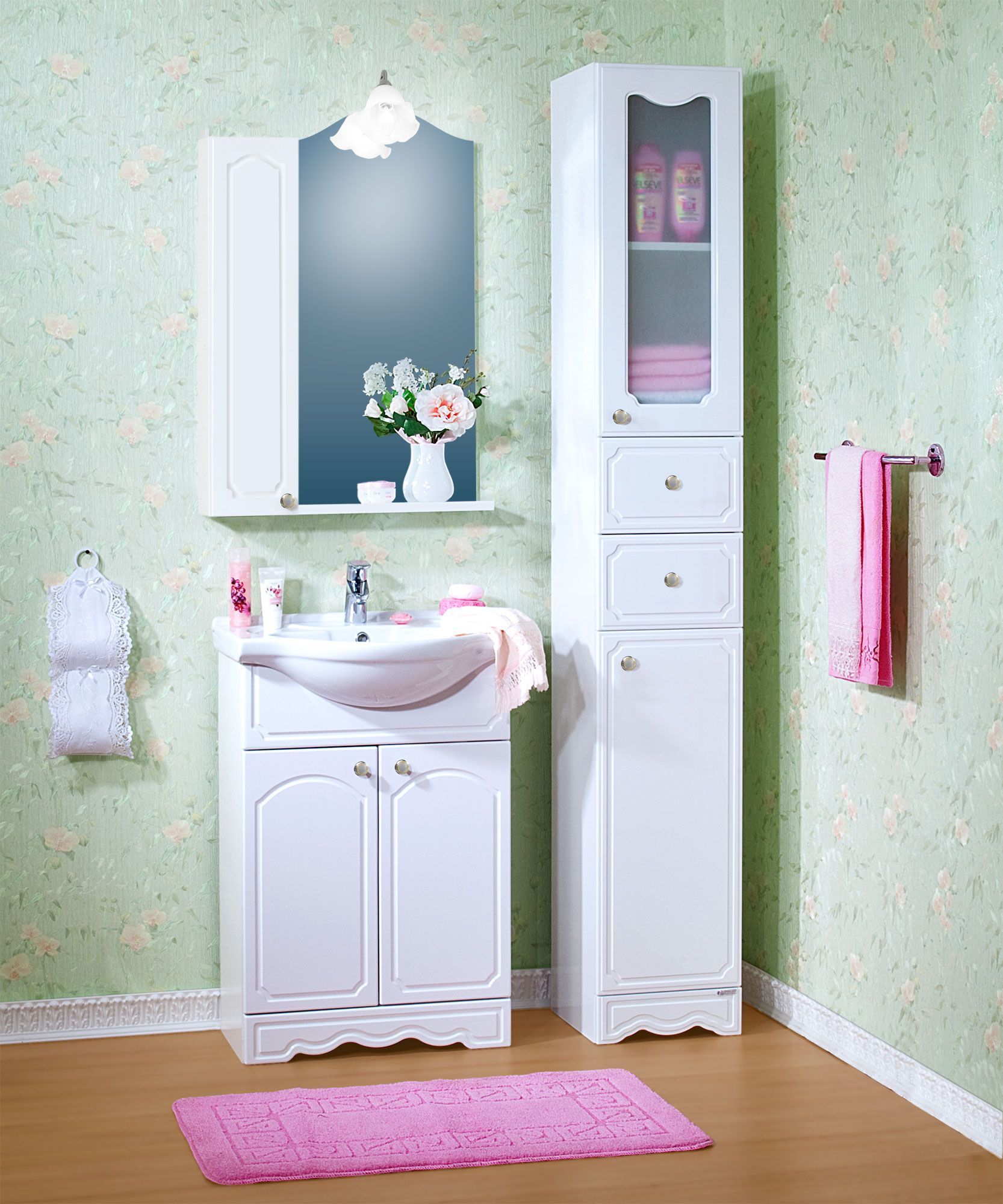 Зеркало Бриклаер Лючия 65 белое со шкафчиком