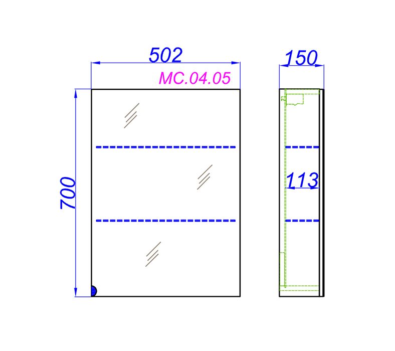 • Зеркало-шкаф МС 50 см универсальный (левый/правый) с одной дверью на петлях с плавным закрыванием
