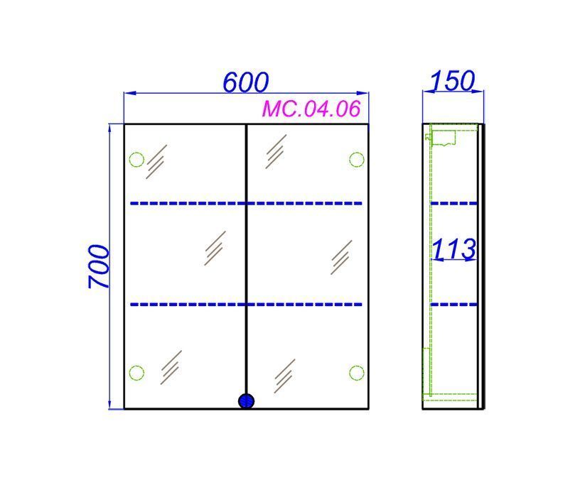 • Зеркальный шкаф МС 60 см с двумя дверьми на петлях с плавным закрыванием