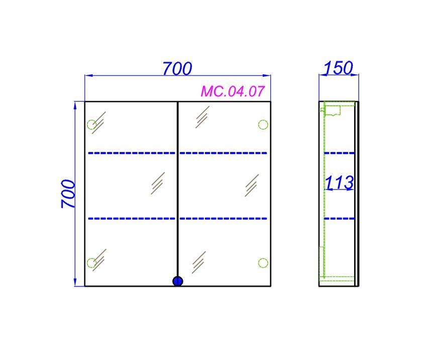 • Зеркальный шкаф МС 70 см с двумя дверьми на петлях с плавным закрыванием
