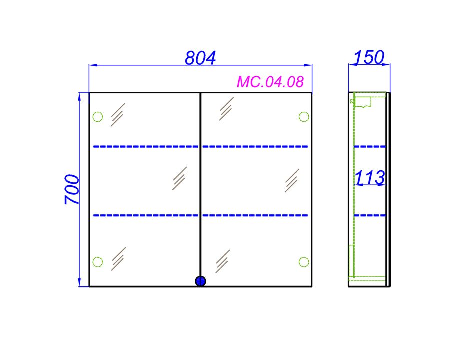 • Зеркальный шкаф МС 80 см с двумя дверьми на петлях с плавным закрыванием