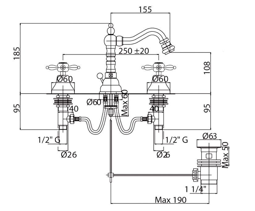 Комплектующие для Смеситель Cezares Atlantis-Nostalgia-BBS2-03/24 для биде