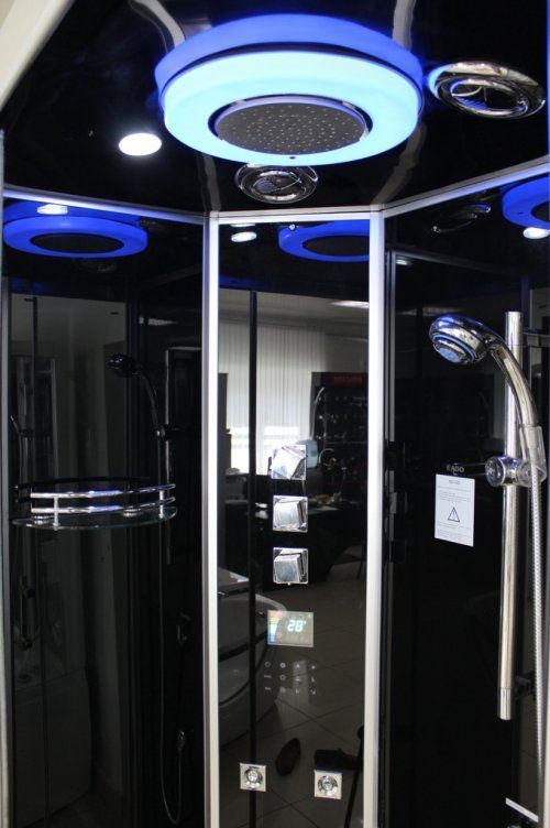 Наличие крыши в душевой кабине позволяет использовать тропический (верхний) душ, вентилятор и верхнюю подсветку. Душевые кабины с крышей на 15 – 20 см выше открытых, что важно помнить при покупке. К тому же в таких кабинах значительно теплее.