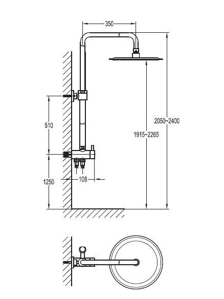душевая стойка с тропическим и ручным душем, регулируемая по высоте, с подключением к смесителю через гибкий шланг