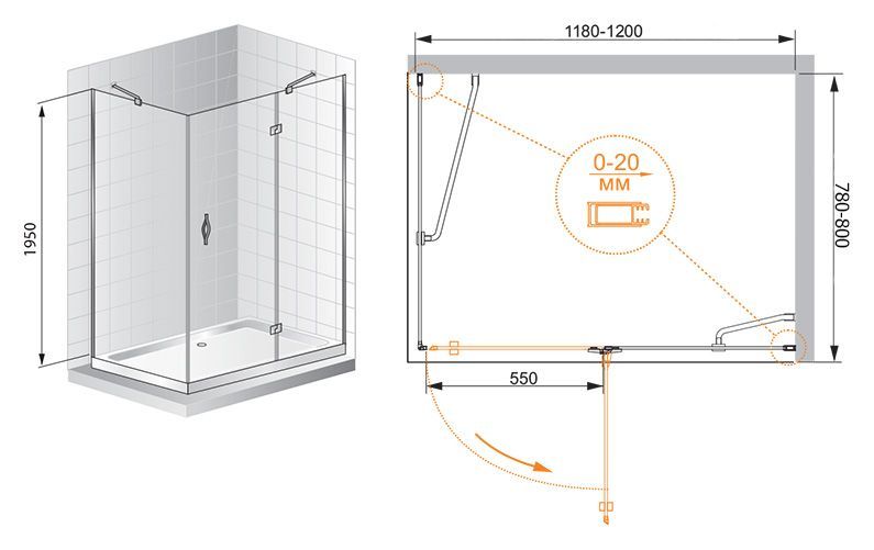 Душевой уголок Cezares Bergamo AH1 120/80 C Cr L