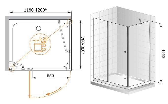 Душевой уголок Cezares Elena-AH-1-120/80-P-Cr-L