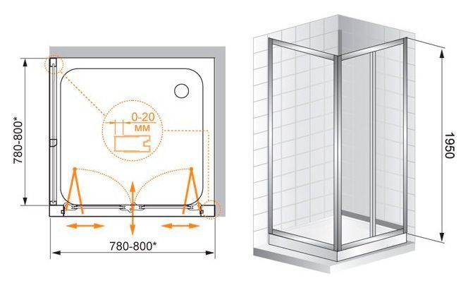 Душевой уголок Cezares Porta-AS-2-80-C-Cr