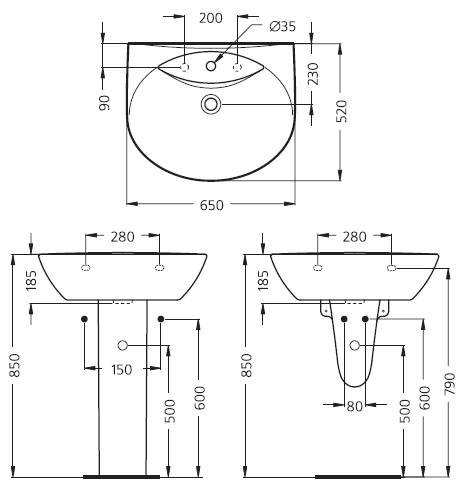 Раковина Ideal Standard Ocean W306001 65 см