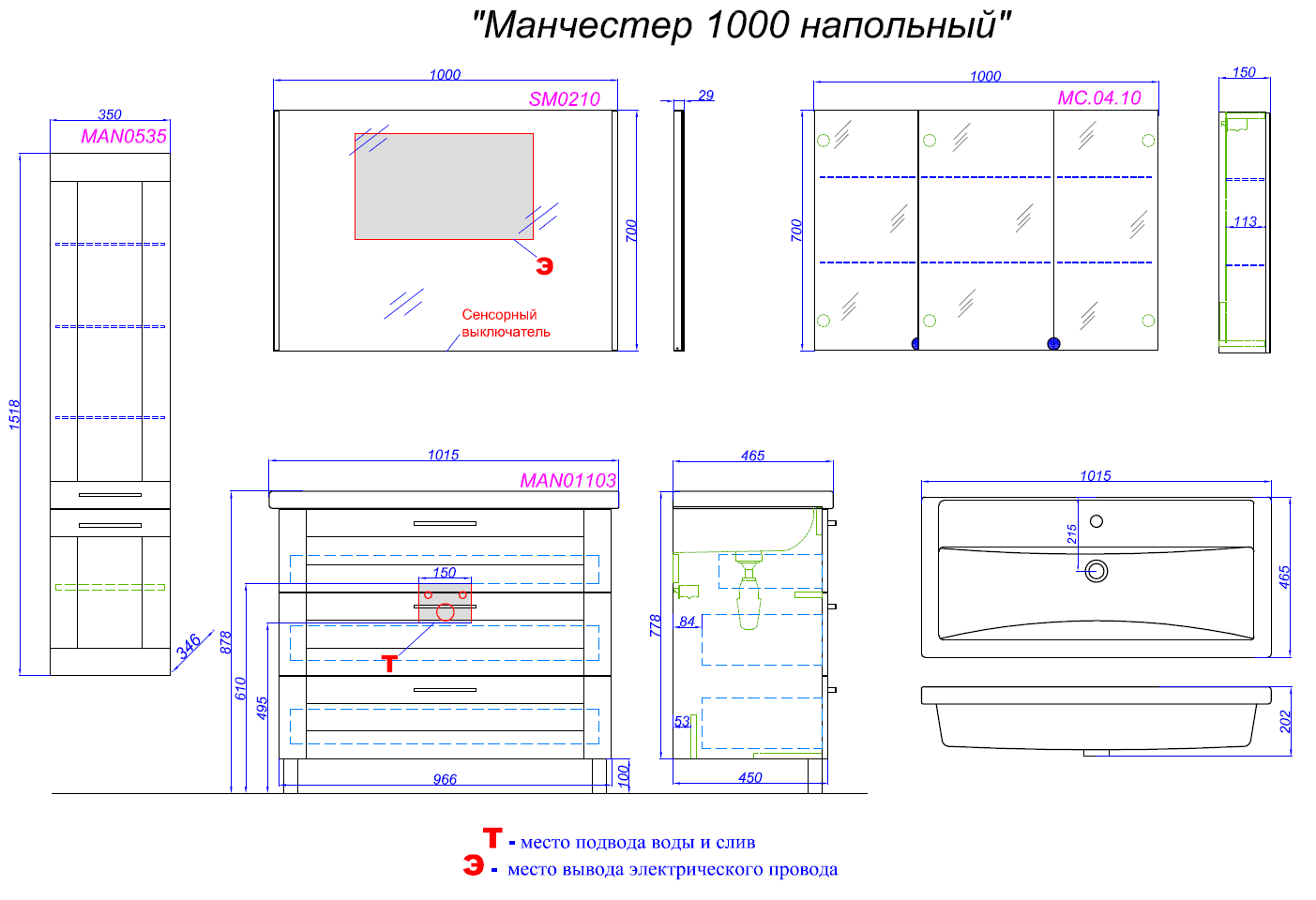 Мебель для ванной Aqwella Манчестер 100 белая напольная
