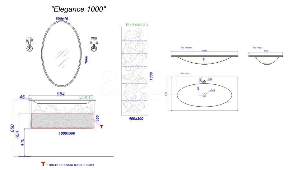 В комплект входит тумба с раковиной и зеркало Элеганс