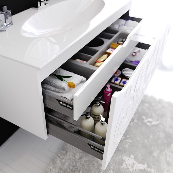 - внутренний ящик оснащен системой полного выдвижения и мягкого закрывания австрийской фирмы «Blum», также ящик имеет встроенный сегрегатор для более удобного хранения различных мелочей