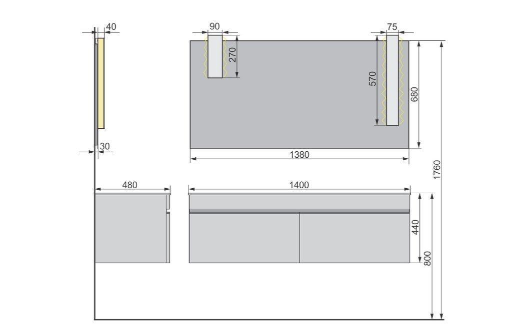 Комплектующие для Мебель для ванной Velvex Pulsus 140 белая