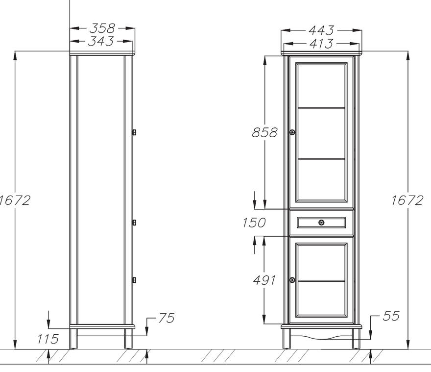 Пенал Opadiris Омега 45 R белый матовый
