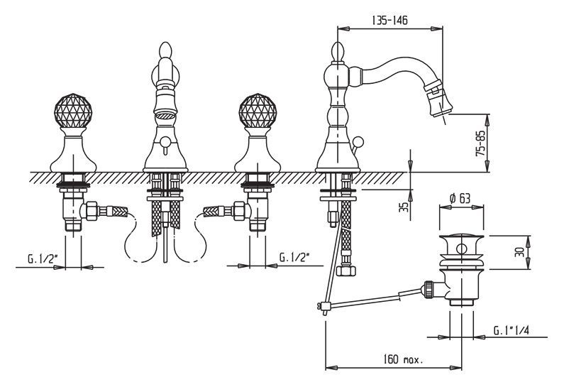Смеситель Cezares Atlantis ATLANTIS-BBS2-02-Sw для биде