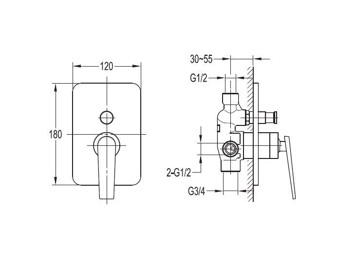 Смеситель для душа (скрытый в стену) применяется для душевой зоны, биде, раковин и для других встраиваемых систем.