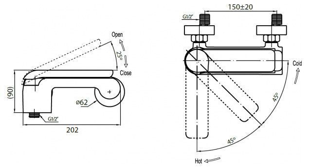 Двухвентильное управление смесителем осуществляется при помощи вращения вентилей холодной и горячей воды, которые регулируют не только температуру воды, но и силу напора.