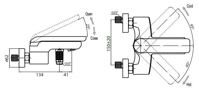 Двухвентильное управление смесителем осуществляется при помощи вращения вентилей холодной и горячей воды, которые регулируют не только температуру воды, но и силу напора.