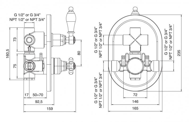 Смеситель Cezares Elite ELITE-VDIM2-T-01-Bi термостат