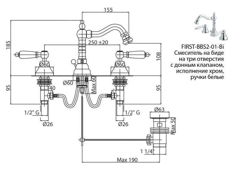 Смеситель Cezares First FIRST-BBS2-02-Bi для биде