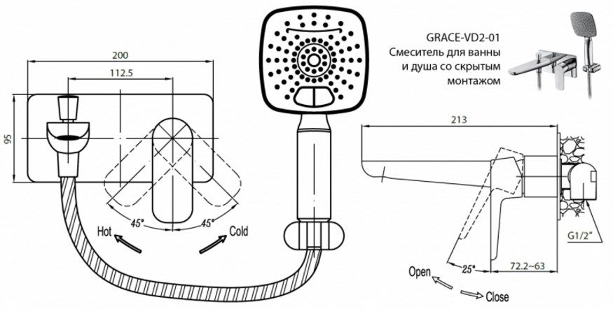 Смеситель для душа (скрытый в стену) применяется для душевой зоны, биде, раковин и для других встраиваемых систем.
