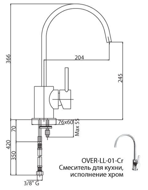 Смеситель Cezares Over OVER-LL-01-Cr для кухни