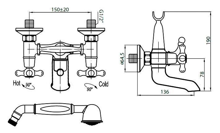 Смеситель Cezares Retro VD1-02 для ванны