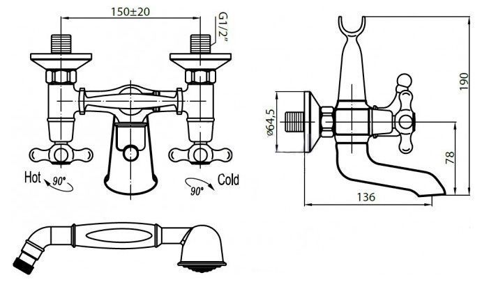 Смеситель Cezares Retro VD2-02 для ванны