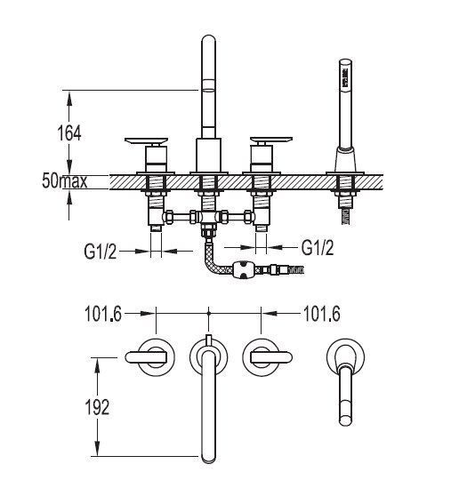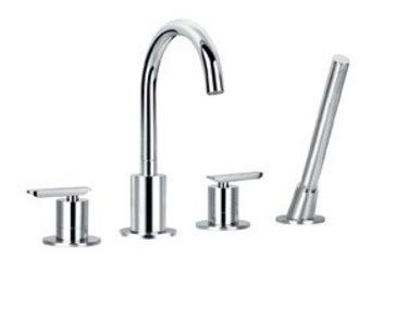 На борт ванны монтируются смесители специальной конструкции, состоящие как правило из нескольких функциональных деталей, врезаемых в отдельные отверстия. Шланг для душа при этом монтаже остается скрытым бортиком ванны.