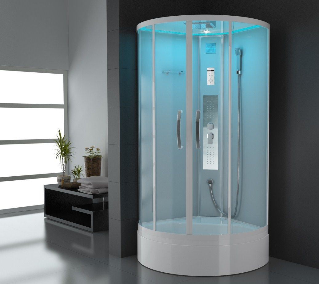 Наличие крыши в душевой кабине позволяет использовать тропический (верхний) душ, вентилятор и верхнюю подсветку. Душевые кабины с крышей на 15 – 20 см выше открытых, что важно помнить при покупке. К тому же в таких кабинах значительно теплее.