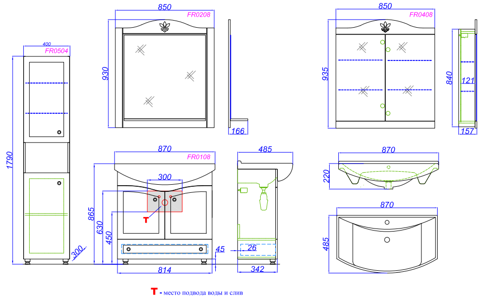 Тумбы с раковиной серии Франческа