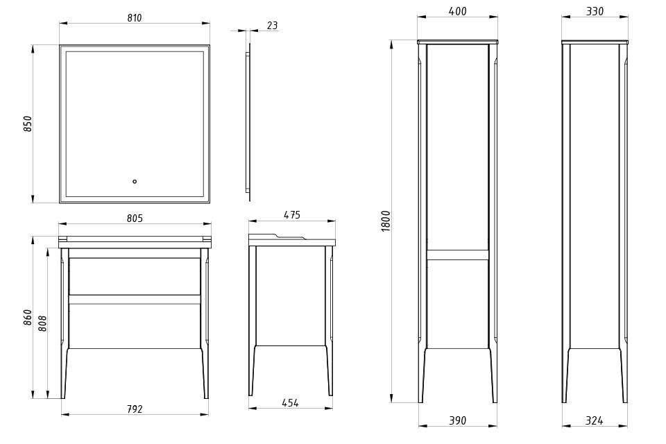 • Подстолье под раковину ASB Woodline Лорена 80 (ш/в/г): 792x808x454 мм