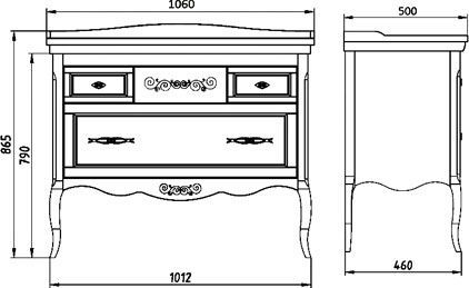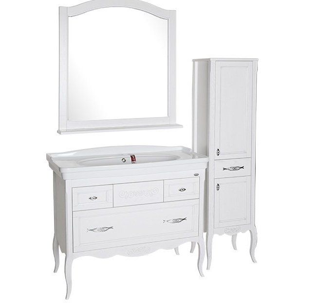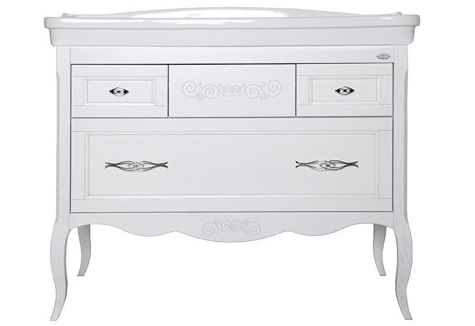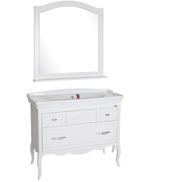 Тумба с раковиной ASB-Woodline Модерн 105 белая, патина серебро