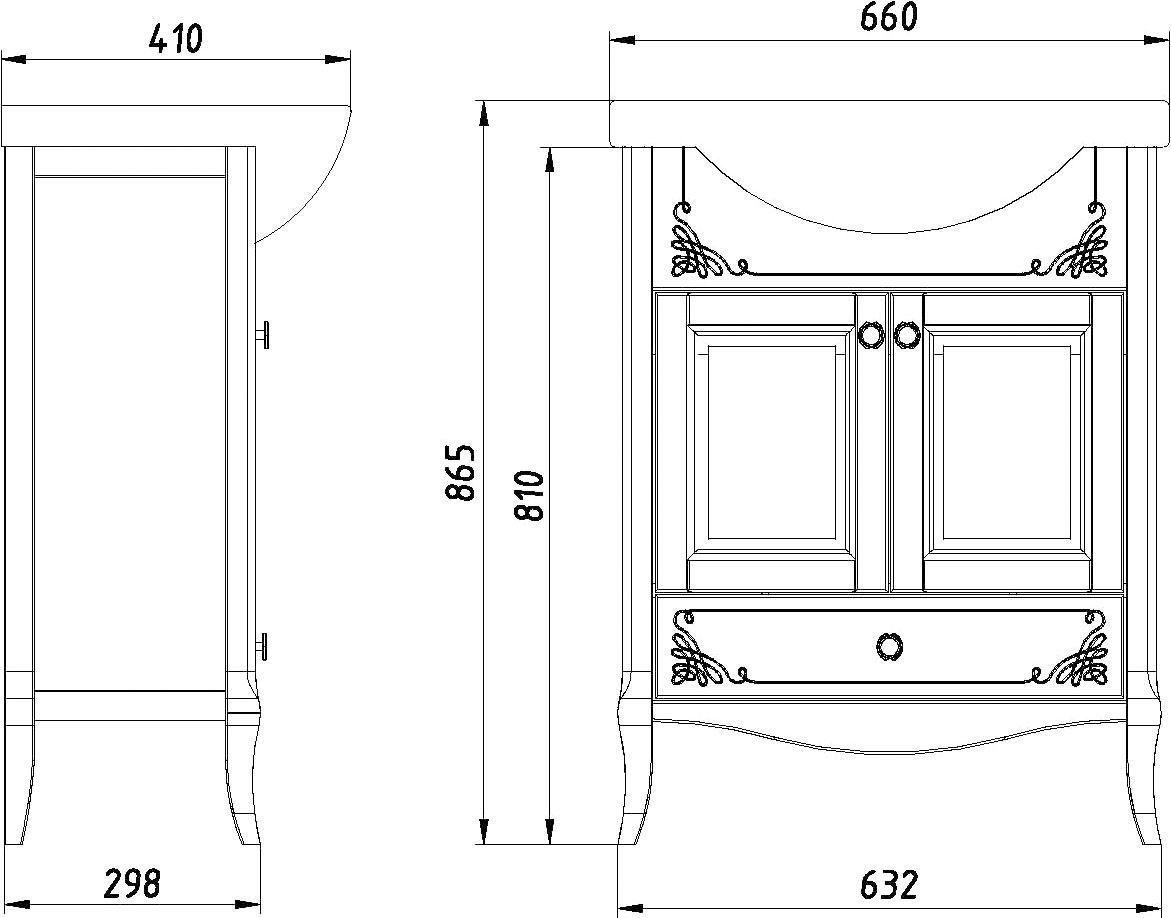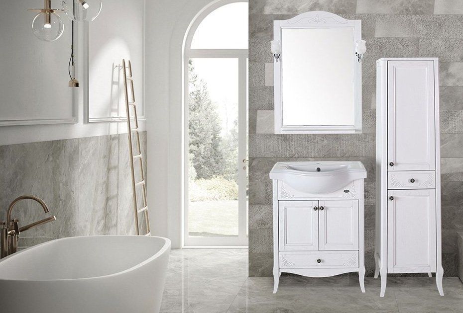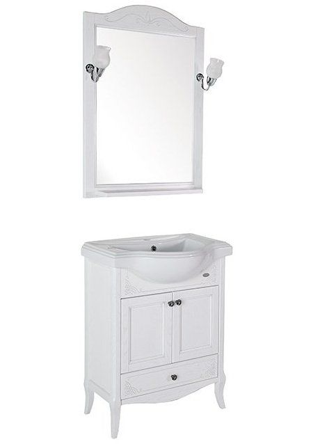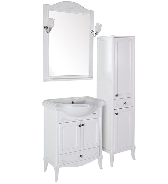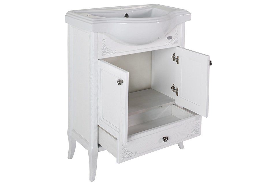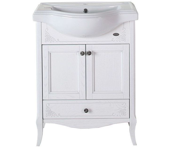 Тумба с раковиной ASB-Woodline Салерно 65 белая, патина серебро