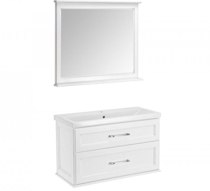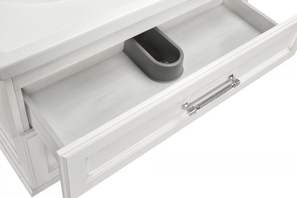 Тумба с раковиной ASB-Woodline Венеция 100 белая, патина серебро